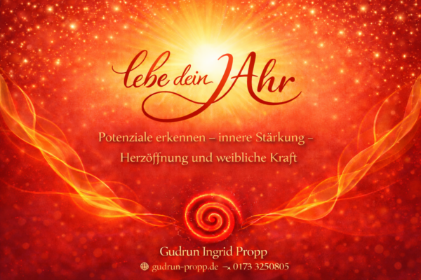 „Lebe dein JAhr“ dieser Workshop ist eine Einladung für dich, in die tiefe und kraftvolle, innere Arbeit mit dir selbst zu kommen. Alles, was du suchst, ist bereits in dir. Entdecke Schlüssel der Stärkung und Selbstermächtigung, mit reichlich Gelegenheit, sie anzuwenden und herauszufinden, wie du sie dir zu eigen machen kannst, mit dem Ziel, das eigene Potenzial zu entfalten, und dich emporzuheben